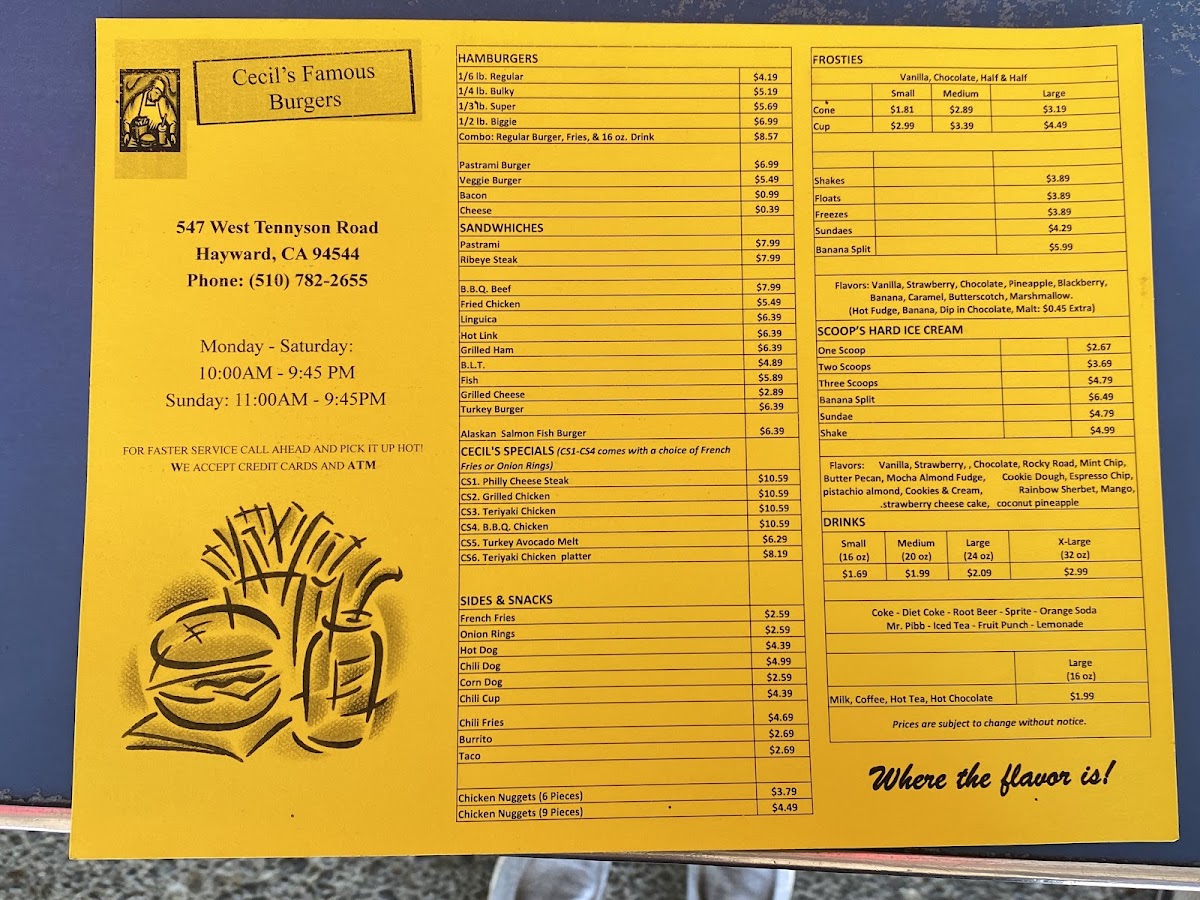 Cecil's Famous Burgers Menu